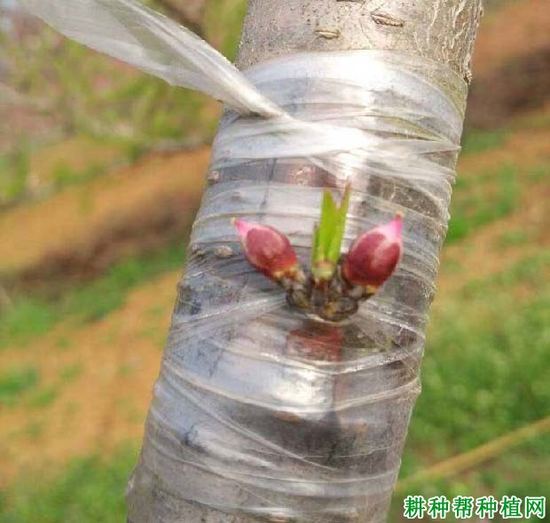 3、嫁接时间:一般在3月下旬至4月上旬进行嫁接。当桃树液大量流动,花蕾正待开放前3~5天,芽苞长出1厘米左右时为嫁接佳期。