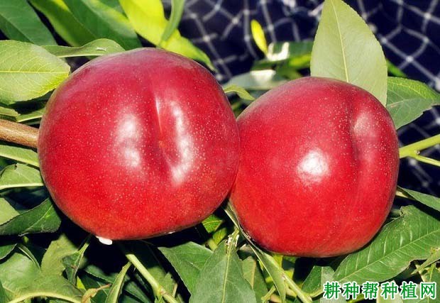 中油金冠油桃,早熟黄肉油桃。果实圆形,果顶凹陷,果皮底色浅黄色,果面全部覆盖红色,缝合线深,果实对称,成熟状态一致,果皮不易剥离,肉质为硬溶质,耐储运。风味甜,黏核,可溶性固形物含量为12~~14.6%。平均单果重210g,最大单果重240g。成熟后挂果时间长,无裂果。
