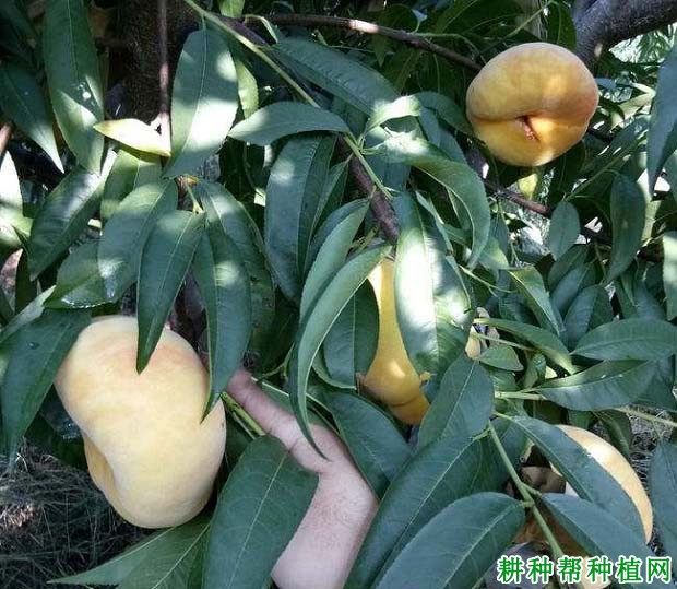 早黄蟠桃果实扁平,果顶微凹,缝合线较深,两半部对称。平均单果重180g,最大350g。近果梗处呈杏黄色,果面大部分着玫瑰红,外表极美。果肉橙黄,柔软,汁多,纤维中等,风味甜,后味微酸,桃味浓郁,清香宜人。可溶性固形物13%~15%。果核小,半离核,叫食率高。