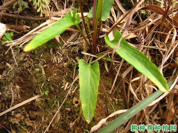 3、叶:基生,具长柄,花期时长2~10cm,果期长可达15cm以上,上部具狭翼。条状披针形或条形,长2~9cm,宽1~2cm,果期叶片增大,顶端纯或稍圆,基部箭状心形、浅心形或仅截形,基部稍下延于叶柄,边缘有疏而浅的波状齿,近基部的齿较深,两面近无毛或无毛。托叶大部与叶柄合生,披针形,具紫褐色斑点,分离部分有疏齿。