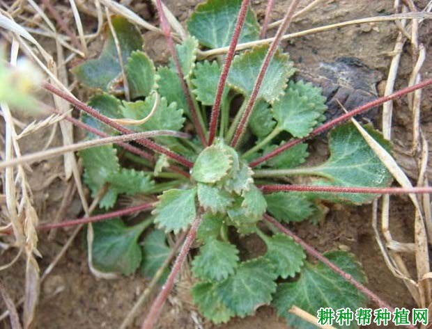3、叶:基出,10~30片簇生,呈莲座状,圆形至心圆形,长5~20mm,宽6~15mm,边缘具密0.5~2cm。无茎生叶。