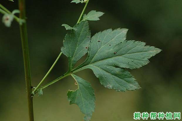 3、叶:薄纸质或纸质,上面初时有稀疏、不明显的腺毛状的短柔毛,背面初时微有稀疏短柔毛,后脱落无毛。基生叶与茎下部叶宽卵形或长卵形,1或2回羽状全裂,具长叶柄,花期枯萎。中部叶倒卵圆形或长卵形,长5.5~14.5cm,宽4.5~12cm,1或2回羽状全裂,稀少溁裂,顶生裂片披针形,长lcm,边缘具不规则锯齿,先端尾尖或急尖,基部楔形,两面无毛,叶脉不明显,每侧有裂片3~5片,裂片或小裂片形状变化大,卵形、长卵形、倒卵形或椭圆形,基部与侧边中部裂片最大,长2~8cm,宽1~3cm,先端渐尖、长尖或钝尖,边缘常有细裂齿或锯齿或近全缘,中轴微有狭翅,柄长2~5cm,两侧有时有小裂齿,基部具细小的假托叶。上部叶与苞片叶略小,羽状深裂、3裂、全裂或不裂,边缘细锯齿,无柄。