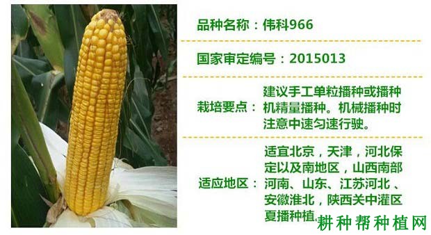 伟科966玉米品种有什么特点?伟科966玉米品种适宜在哪里种植?伟科966玉米品种亩产多少公斤?以下耕种帮种植网就作简单介绍,供网友们参考。