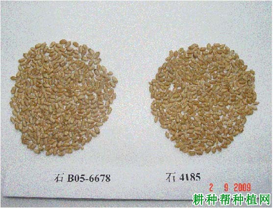 七、亩产量:2007-2008年度参加黄淮冬麦区北片水地组品种区域试验,平均亩产548.0公斤,比对照石4185增产6.10%;2008-2009年度续试,平均亩产543.9公斤,比对照石4185增产6.8%。2008-2009年度生产试验,平均亩产520.1公斤,比对照石4185增产5.09%。