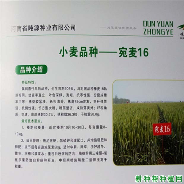 宛麦16小麦品种有什么特点?宛麦16小麦品种适宜在哪里种植?宛麦16小麦品种亩产多少公斤?以下耕种帮种植网就作简单介绍,供网友们参考。