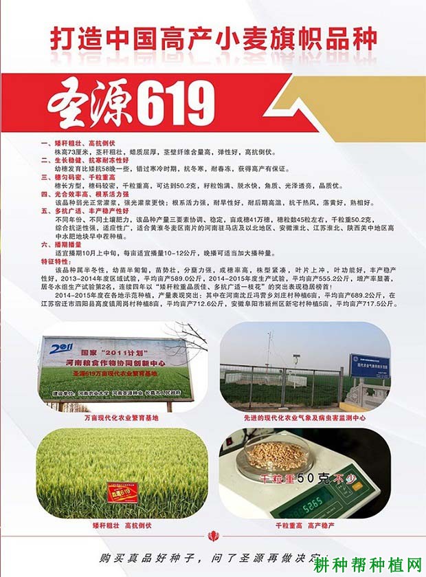 圣源619小麦品种有什么特点?圣源619小麦品种适宜在哪里种植?圣源619小麦品种亩产多少公斤?以下耕种帮种植网就作简单介绍,供网友们参考。