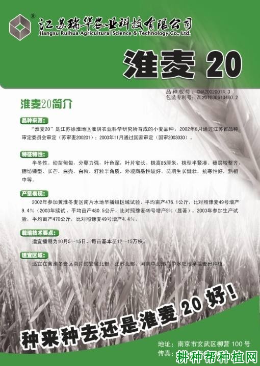 淮麦20小麦品种有什么特点?淮麦20小麦品种适宜在哪里种植?淮麦20小麦品种亩产多少公斤?以下耕种帮种植网就作简单介绍,供网友们参考。
