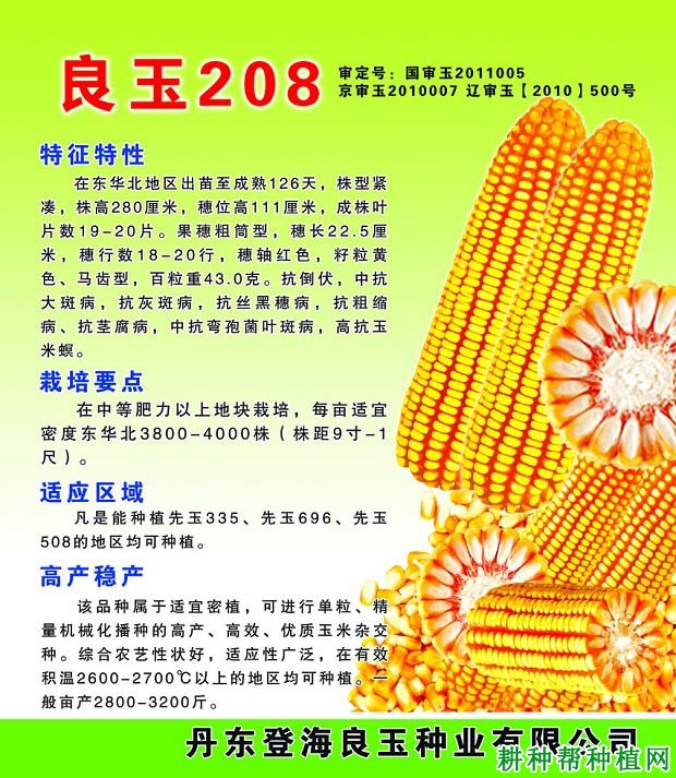 以上就是耕种帮种植网对良玉208玉米品种的介绍,如您有更好的见解请在下方留言告诉我们。