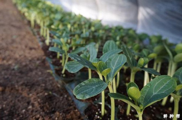 2、黑籽南瓜:属于南瓜砧木,适应性和抗病性、根系生长势都很强,嫁接亲和性好。黑籽南瓜作为设施栽培甜瓜嫁接苗的砧木,可显著提高产量,促进早熟,增强抵抗低温寒害的能力,增强对枯萎病、疫病等病害的抗性。嫁接育黑籽南瓜苗标准为苗高6~7厘米,茎粗0.6厘米,子叶展开,第一片真叶2厘米左右。