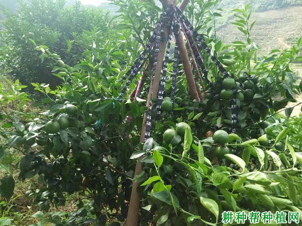 柑橘果树,性喜温暖,又喜湿润。适宜的降雨和湿度有利于柑橘果树的生长、发育和产量、品质的提高。一般认为柑橘果树的生长结果以年降水量1000毫米(耕种帮建议在1000~1500毫米范围内)、空气相对度75%左右,土壤的相对湿度60%~80%为宜,国外和我国的多数柑橘产区,基本上都能达到上述要求。但即使年降水量达到1000毫米或以上,因季节性分布不均,仍需灌溉。有水源之地,降水量不足1000毫米,甚至只有几百毫米,仍能种植。土壤湿度通过人工灌排加以调节,旱灌涝排。空气的相对湿度,对柑橘的某些种类、品种影响较大,如脐橙,特别是华盛顿脐橙,花期和幼果期的空气相对湿度达到85%,落花落果严重,甚至出现“花开满树喜盈盈,遍地落果一场空”的惨景。空气湿度低,可用果园灌水(耕种帮建议用喷灌)解决,但要降低空气相对湿度是不易之事。