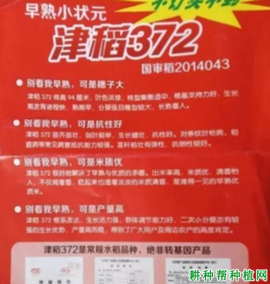 津稻372水稻品种有什么特点?津稻372水稻品种适宜在哪里种植?津稻372水稻品种亩产多少公斤?以下耕种帮种植网就作简单介绍,供网友们参考。