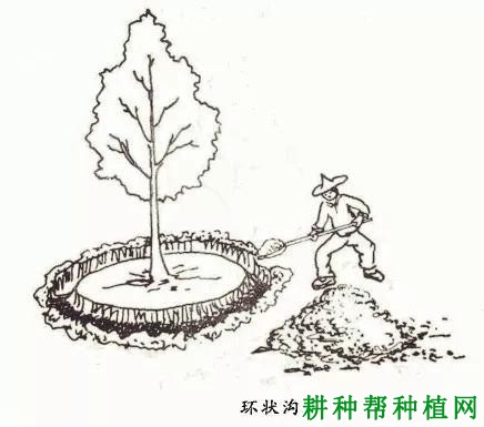肥料施入。该方法较环状施肥法伤根少,但在挖沟时要躲开大根。