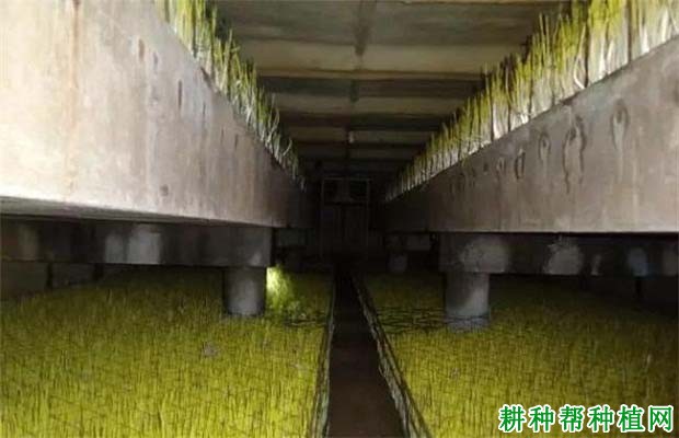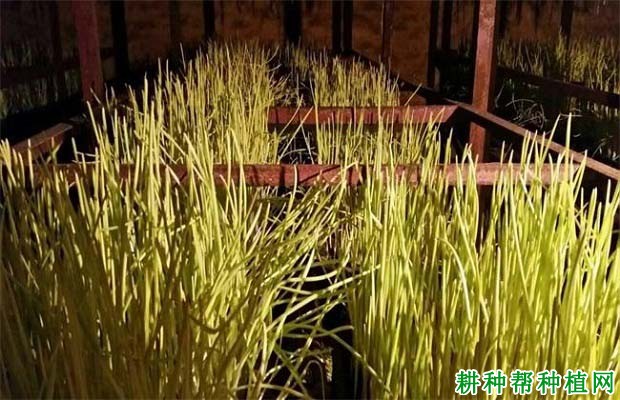 4、光照管理:蒜黄生产与青蒜苗生产的本质区别就在于它不需光照。在井窖或地下防空洞内栽培,蒜黄在黑暗中生长,人入窖作业时,窖内可使用3瓦灯管或蜡烛照明。在保护地和蒜黄窑内栽培,前期可见光,以后分期遮光。