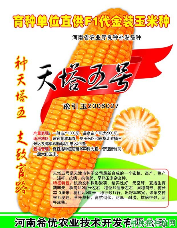 天塔5号玉米品种有什么特点?天塔5号玉米品种适宜在哪里种植?天塔5号玉米品种亩产多少公斤?以下耕种帮种植网就作简单介绍,供网友们参考。
