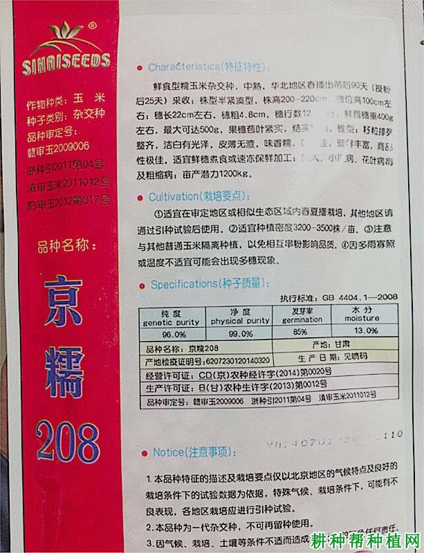 京糯208玉米品种有什么特点?京糯208玉米品种适宜在哪里种植?京糯208玉米品种亩产多少公斤?以下耕种帮种植网就作简单介绍,供网友们参考。