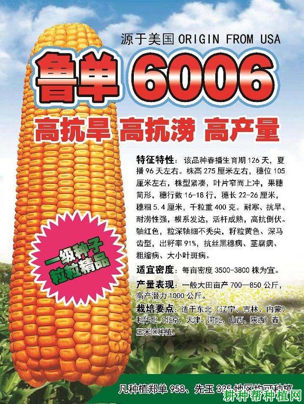 鲁单6006玉米品种有什么特点?鲁单6006玉米品种适宜在哪里种植?鲁单6006玉米品种亩产多少公斤?以下耕种帮种植网就作简单介绍,供网友们参考。
