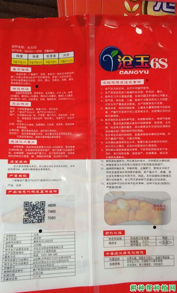 沧玉6S玉米品种有什么特点?沧玉6S玉米品种适宜在哪里种植?沧玉6S玉米品种亩产多少公斤?以下耕种帮种植网就作简单介绍,供网友们参考。