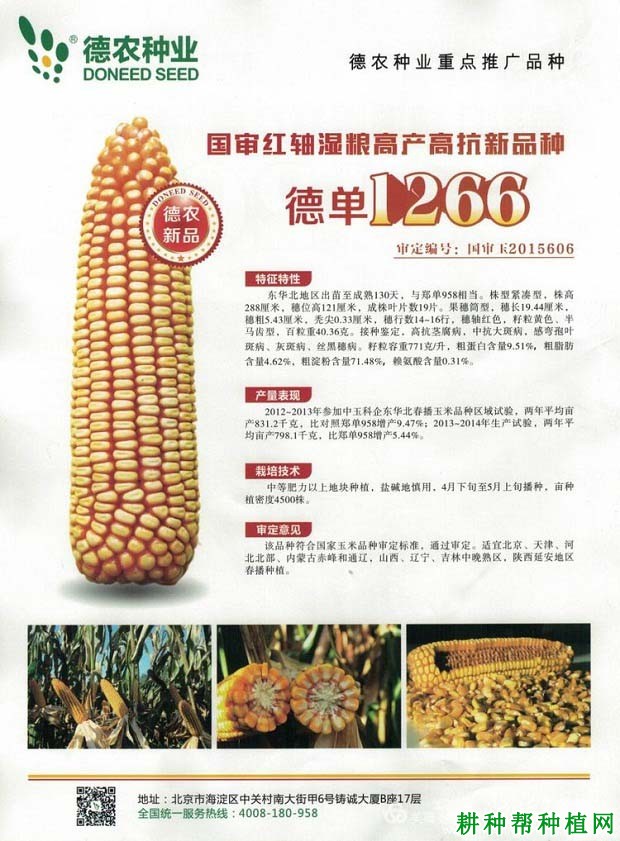 以上就是耕种帮种植网对德单1266玉米品种的介绍,如您有更好的见解请在下方留言告诉我们。