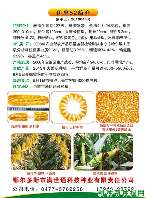 伊单52玉米品种有什么特点?伊单52玉米品种适宜在哪里种植?伊单52玉米品种亩产多少公斤?以下耕种帮种植网就作简单介绍,供网友们参考。