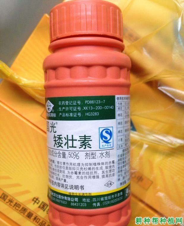 矮壮素又叫2-氯-N,N,N-三甲基乙铵氯化物、稻麦立、氯化2-氯-N,N,N-三甲基乙胺、三西、西西西、氯化氯代胆碱,是一种优良的植物生长调节剂,可用于小麦、水稻、棉花、烟草、玉米及西红柿等作物,抑制作物细胞伸长,但不抑制细胞分裂,能使植株变矮,杆茎变粗,叶色变绿,可使作物耐旱耐涝,防止作物徒长倒伏,抗盐碱,又能防止棉花落铃,可使马铃薯块茎增大。