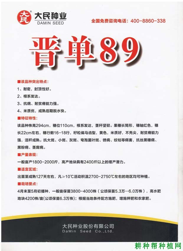 以上就是耕种帮种植网对晋单89号玉米品种的介绍,如您有更好的见解请在下方留言告诉我们。