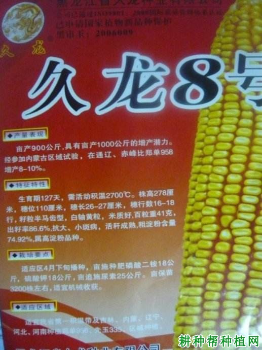 久龙8号玉米品种有什么特点?久龙8号玉米品种适宜在哪里种植?久龙8号玉米品种亩产多少公斤?以下耕种帮种植网就作简单介绍,供网友们参考。