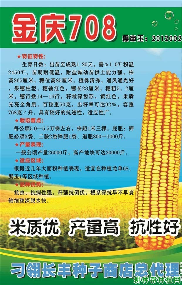 金庆708玉米品种有什么特点?金庆708玉米品种适宜在哪里种植?金庆708玉米品种亩产多少公斤?以下耕种帮种植网就作简单介绍,供网友们参考。