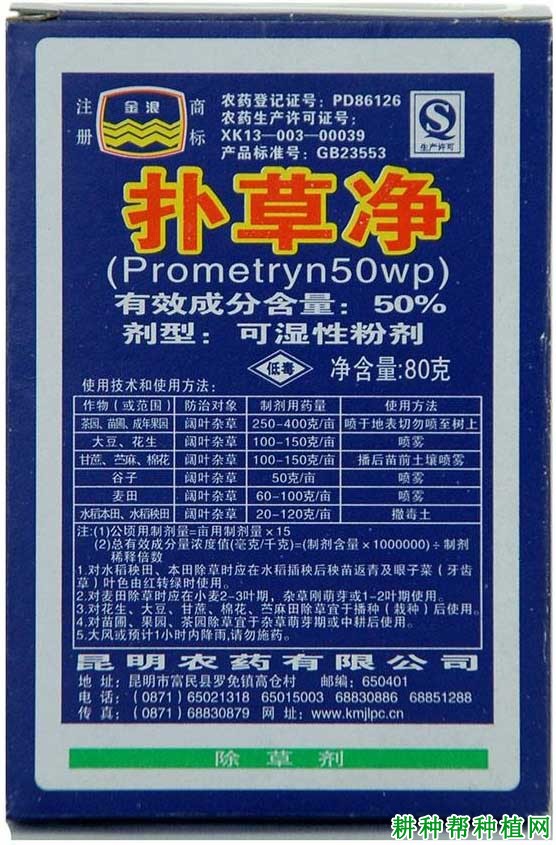 扑草净属选择性内吸传导型除草剂。扑草净水溶性较低,施药后可被土壤黏粒吸附在0-5cm表土中,形成药层,使杂草萌发出土时接触药剂。持效期20-70d,旱地较水田长,黏土中更长。应用作物较广。主要作用于大豆,花生,棉花,水稻,甘蔗等作物田,防除禾本科杂草和阔叶杂草。现将扑草净除草剂的作用机制介绍如下: