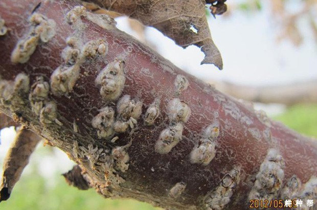 1、冬季用毛刷擦刷树枝干,再用石油乳剂15~20倍液喷洒。