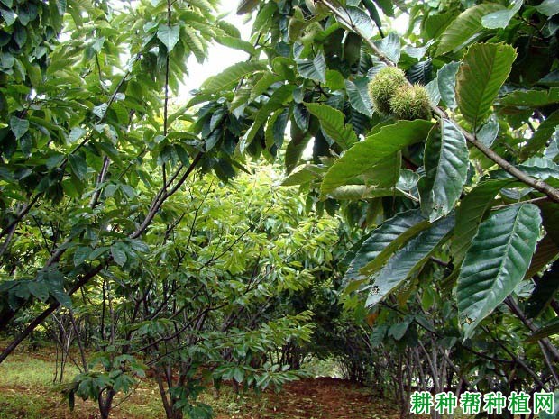 2、板栗栽植:栽植宜采用良种苗且为2~3年生大苗。苗高不低于1.2米,地径不低于1厘米,根系发达完整,生长健壮,无病虫害,无机械损伤。在秋季落叶后到春节萌发前均可栽植。一般一亩可栽20~30株,栽时树要栽端正,土要踏实,根要舒展。栽后要浇透定根水,以提高造林成活率。