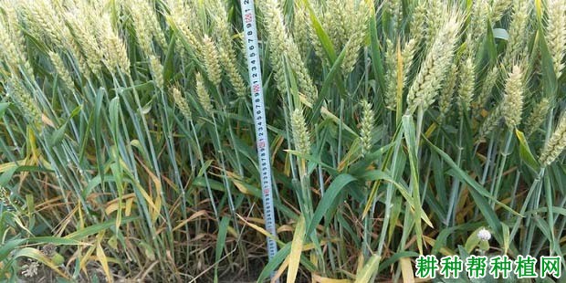特征特性:属半冬性晚熟品种,全生育期230.3~231.2天。幼苗半匍匐,叶片宽长,叶色浓绿,冬季抗寒性一般;分蘖力弱,成穗率高,春季返青起身早,两极分化快;株型偏紧凑,旗叶宽短,上冲,株高79.2~87.0厘米,植株偏高,抗倒伏能力一般;穗长方型,长芒、白壳、白粒,籽粒角质;耐后期高温,熟相好。产量构成三要素:亩成穗数37.1~44.2万,穗粒数29.3~35.6粒,千粒重49.1~52.3克。