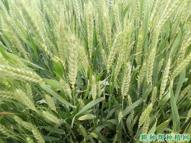 特征特性:属半冬性中晚熟品种,全生育期224.3-233.9天。幼苗半匍匐,苗期叶片较窄、上举,叶色浓绿,冬季抗寒性较好;分蘖力中等,成穗率较高,春季起身、抽穗略晚,抗倒春寒能力一般;株型较松散,旗叶短小上举,穗下节间长,茎秆及穗蜡质厚,株高80.0-80.8cm,抗倒伏能力一般;长方型穗,穗层整齐,长芒,白壳,白粒,半角质,有黑胚;后期耐热性好,落黄一般。产量构成三要素:亩穗数35.3-37.9万,穗粒数32.3-34.6粒,千粒重45.5-50.6g。