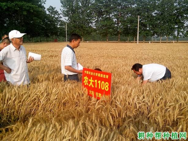 6. 栽培技术要点:(1)播期:适于中早茬种植,适宜播期为10月10日左右。播量:在适宜播期内,基本苗以每亩14-18万为宜,高肥力地块亩播量6-8公斤,中低肥力8-10公斤,如延期播种,以每推迟3天增加0.5公斤播量为宜。(2)亩施底肥尿素20公斤,磷酸二铵25公斤,硫酸钾15公斤或三元素复合肥(15:15:15)50公斤,春节前后每亩追施尿素7~10公斤。(3)浇好底墒水,足墒下种,一播全苗;农大1108有一定的耐旱能力,原则上生育期间应尽量少浇水,越冬水在不干旱情况下可以不浇,不主张浇返青水,可根据土壤墒情浇拔节水或孕穗水及灌浆水。(4)防治病虫害,抽穗至灌浆期结合“一喷三防”,注意防治赤霉病。