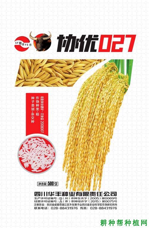 (2)品种来源:用引进的不育系协青早A与自育恢复系华恢027组配而成的中籼迟熟高直链淀粉专用杂交稻组合。
