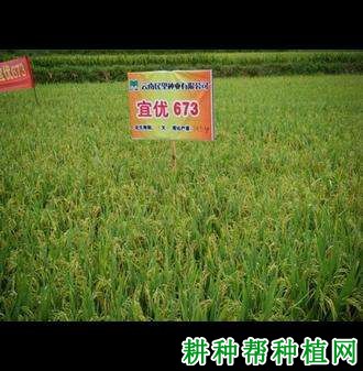 省品审会审定意见:宜优673为感温型三系杂交稻组合。晚造全生育期比粳籼89早熟1~3天。丰产性较好,米质未达优质标准,高抗稻瘟病,中感白叶枯病,耐寒性中。适宜我省粤北以外稻作区早、晚造种植,栽培上要注意防倒伏。
