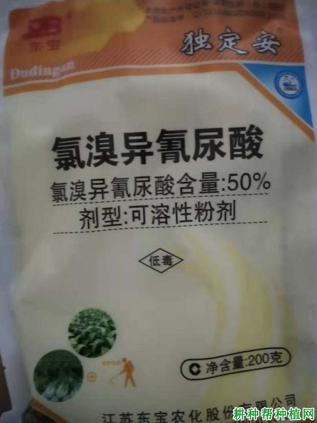 氯溴异氰尿酸,也叫“消菌灵”“菌毒清”,被广泛用于自来水公司、游泳池、医疗场所等使用的氧化性消毒剂。农业上多使用50%氯溴异氰尿酸,它是一种广谱、高效、无公害及与环境相容的