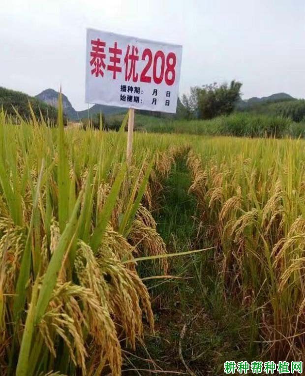 省品审会审定意见:泰丰优208为感温型三系杂交稻组合。晚造全生育期与对照种优优122相当。产量与对照种相当,米质鉴定为省标优质3级,中感稻瘟病,感白叶枯病,耐寒性中。适宜我省粤北稻作区和中北稻作区早、晚造种植,栽培上要注意防治稻瘟病和白叶枯病。