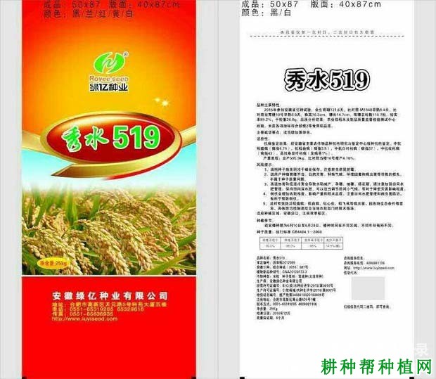 品种名称:秀水519(原名:丙08-519)