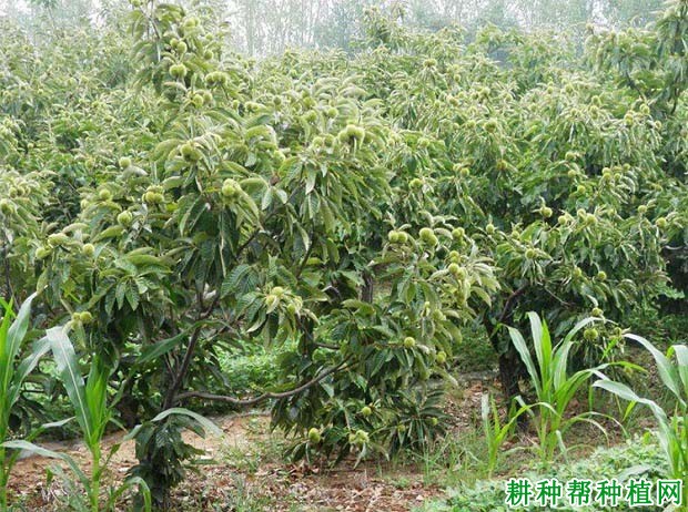 3、回缩:当部分枝条顶端生长势开始减弱、结果能力稍差时,应适时分年分批地回缩,降低到有分枝的低级次位置上,密植栗树的小枝更新应常年进行,降低结果部位,延缓结果外移的果间。
