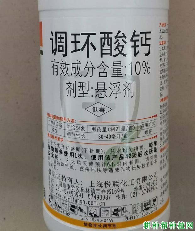 赤霉素合成抑制剂,主要用于控制小麦、水稻、玉米、花生、马铃薯、甘薯等作物的旺长。我国2001年开始引进应用。调环酸钙与三唑类延缓剂相比,它最大的优点是对下茬作物无残留、对人和动物无毒性,对环境无污染,是替代三唑类延缓剂的理想药剂,具有很大的应用前景。