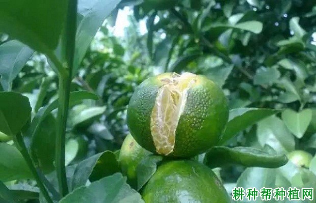 保持土壤水分均衡。水分对柑桔果实的生长发育影响很大。切忌不能看见裂果后才加强淋灌,防治裂果应加强日常果园的水分管理工作,落实科学用水。土壤持水量60%~80%。秋冬旱,要适当灌水。