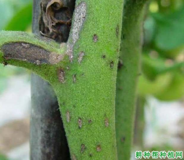 该病主要为害茎部,也为害叶片、叶柄、果柄和果实