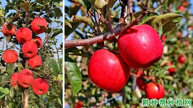 “福星”苹果新品种果实呈近圆形,单果重238.08克,果形指数0.93,外观美观、果形高桩;果面光洁且覆有蜡质,在不套袋栽培条件下果实可全面着鲜红色。果实可溶性固形物含量17.83%,果肉硬度达11.61千克/平方厘米,可滴定酸含量0.28%,口感酸甜适中,果肉硬脆,风味浓郁且香气明显,兼具鲜食与加工用途。在山东省青岛市栽培区,该品种果实于10月下旬成熟,全生育期180天;果实若晚采收,会出现糖心现象。“福星”为短枝型品种,叶片对叶枯病、早期落叶病及苦痘病表现出高抗性。其贮藏性能优良,果实置于冷藏条件下(温度±4℃)存储至次年5月中旬,果肉硬度仍可达8.13千克/平方厘米。该品种适应性强、丰产性好,以“M9T337”为砧木的3年生树,平均单株产量9.52千克,折合每亩产量1504.6千克。“福星”苹果于2019年通过山东省林木良种审定,2020年获得国家非主要农作物品种登记证书及植物新品种权证书,2024年以1000万元的价格转让给莱州大自然园艺科技有限公司。