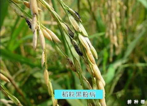 2、水稻扬花期温度25~30℃,遇连续阴雨,易发生稻粒黑粉病。