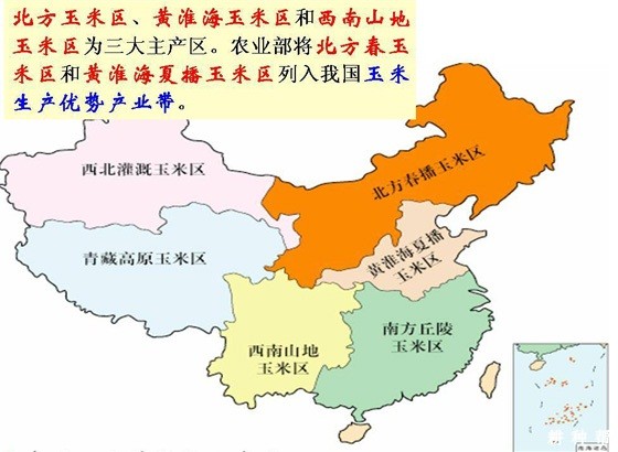 我国地域辽阔,玉米分布广泛,主要集中在东华北春玉米区、黄淮海平原夏播玉米区、西北灌溉玉米区、西南山地玉米区、南方丘陵玉米区、青藏高原玉米区六大区域。