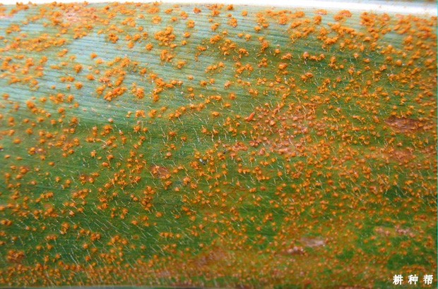 发病严重时,叶片上布满了孢子堆,造成大量叶片干枯,植株早衰,甚至全株干枯。