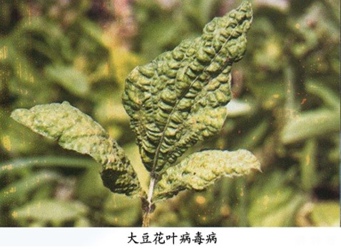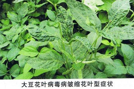 大豆花叶病毒病可分为轻花叶型、皱缩花叶型和皱缩矮化型。