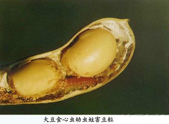 2、幼虫:孵化的幼虫在豆荚上爬行,多在豆荚侧面靠近边缘的合缝附近吐丝结网。幼虫咬食荚皮,蛀荚为害。幼虫在豆荚内为害20~30天后老熟,在9月中旬到10月上旬陆续脱荚入土越冬,盛期在9月下旬。