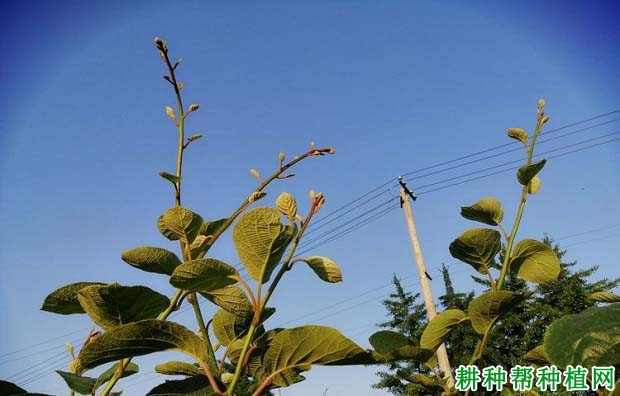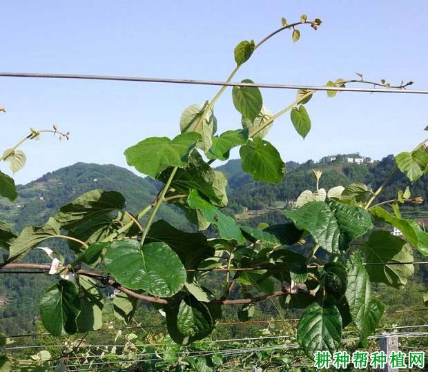 猕猴桃有限生长枝生长不旺盛,生长的长度不等。因此,上面着生叶和花的数量也不稳定,枝梢顶端常常枯萎死亡,枯萎部分有时达10厘米长,称“自枯现象”。枝上留有3~6片均已发育为正常大小的叶。藤蔓内膛向下侧生的枝,因光照不足,组织不充实,3~4年后枯萎死亡,并由其下侧生长势强的枝条代替,形成自然更新。生长势强的营养枝在发育后期,出现缠绕习性。有限枝的长度和数量,取决于猕猴桃的品种特性和藤蔓生长势的强弱,短的有限枝称“短枝”或“距”。