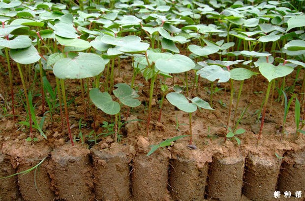 营养钵塑料薄膜覆盖育苗能有效地控制苗床温度和水分,便于集中管理,可以满足棉子发芽、出苗所需的水分、温度条件,不仅出苗早,而且苗全、苗壮,为棉花早熟高产打下良好的基础。